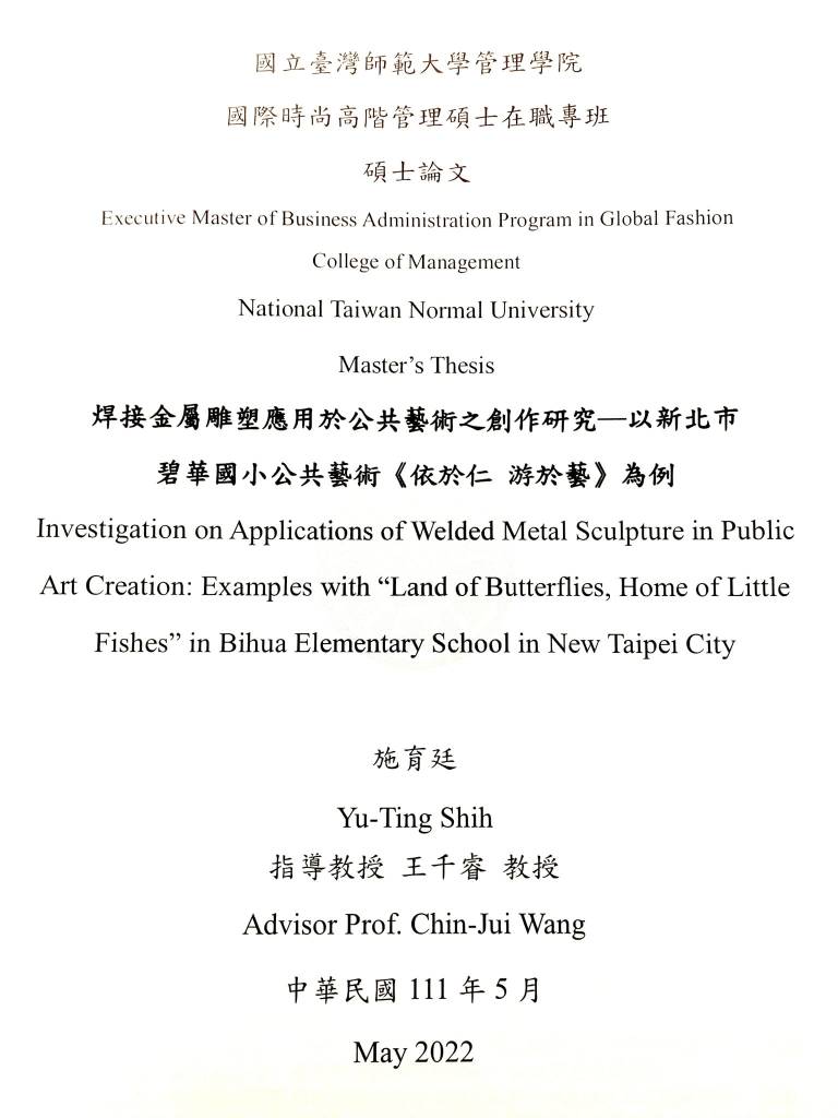 讀完管理學院的MBA,感覺創作生涯也應該沈澱一下、重整再出發。有趣的是,回顧了一下自己30年來的4篇學位論文(BFA, MFA, MBA & Ph.D),原來也都圍繞著“焊接金屬雕塑”(Welded Sculpture)這主題。彷彿自己在經歷金屬創作探索的同時,也在同步梳理相應的思維體系及見識。