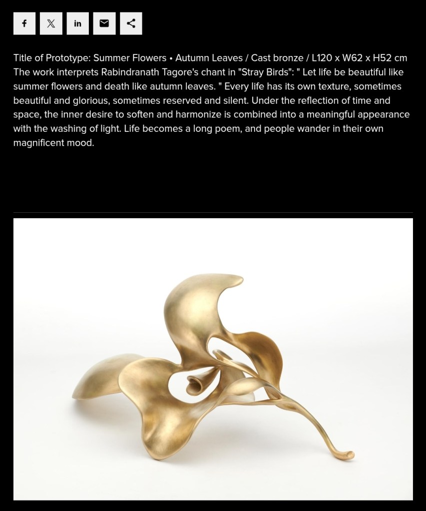 The inspiration for the work “Summer Flowers • Autumn Leaves” comes from Tagore’s lament in The Stray Birds: “Life is as beautiful as summer flowers, death as serene as autumn leaves.” The creative concept at the time was: every life has its own texture, sometimes vibrant and radiant, sometimes restrained and quiet. Reflected in time and space, the gentle and harmonious will within, washed and transformed by light, becomes an enduring form. Life becomes a long poem, and people wander in their own magnificent moods.