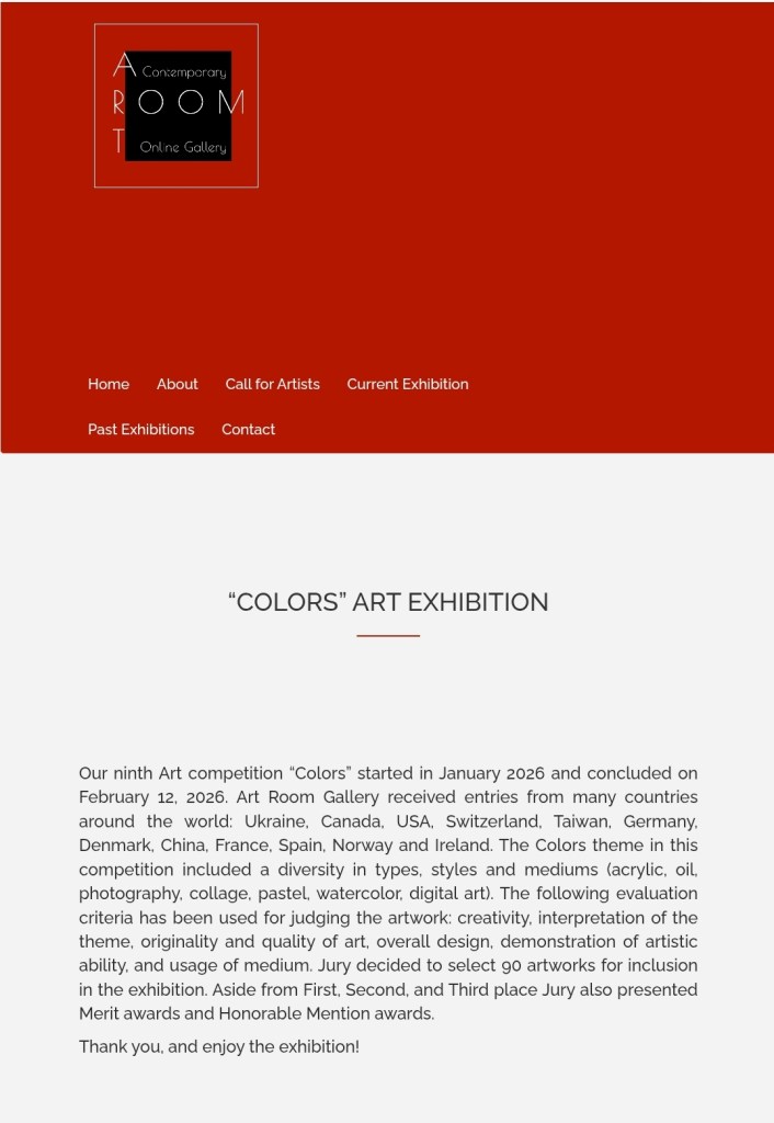 * 分享作品“陽光 • 縱谷 • 海岸線”在加拿大 Art Room Gallery的Colors 國際線上競獎中獲得第2名